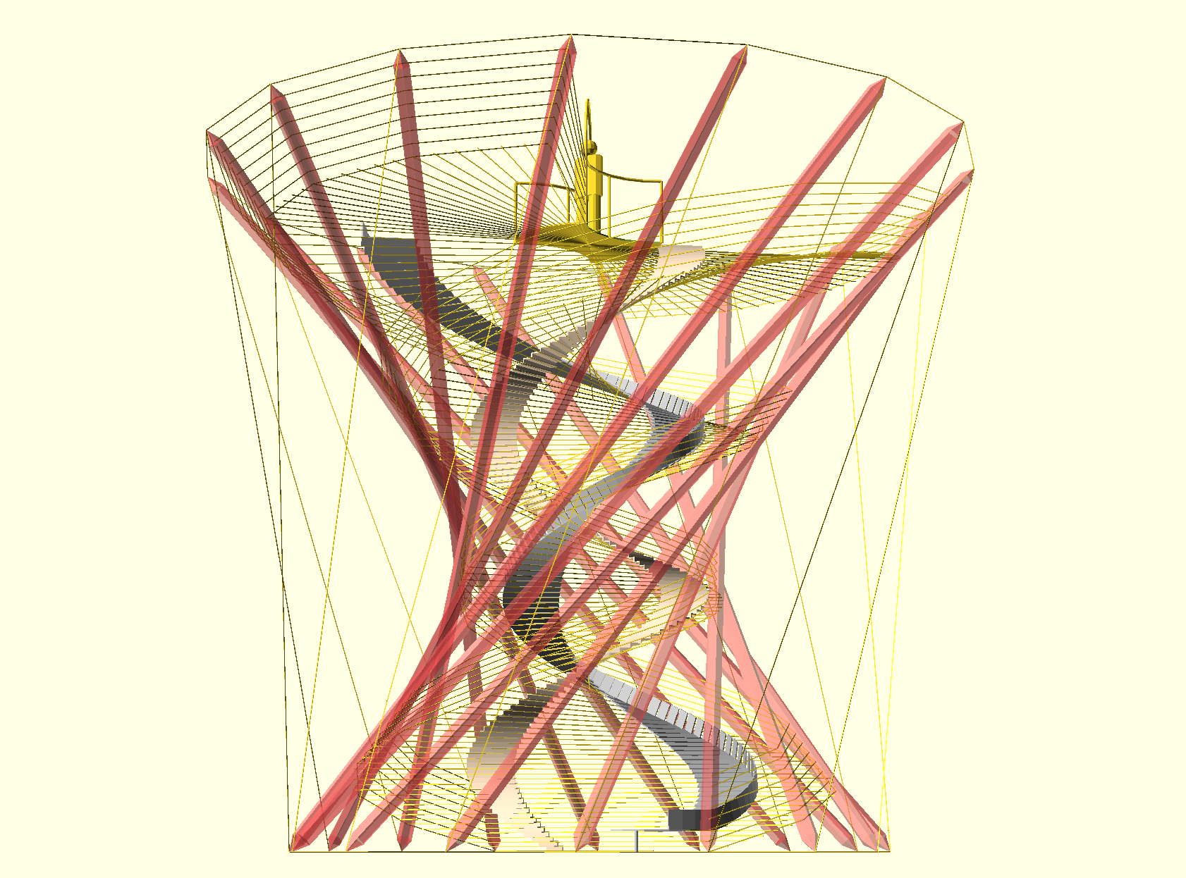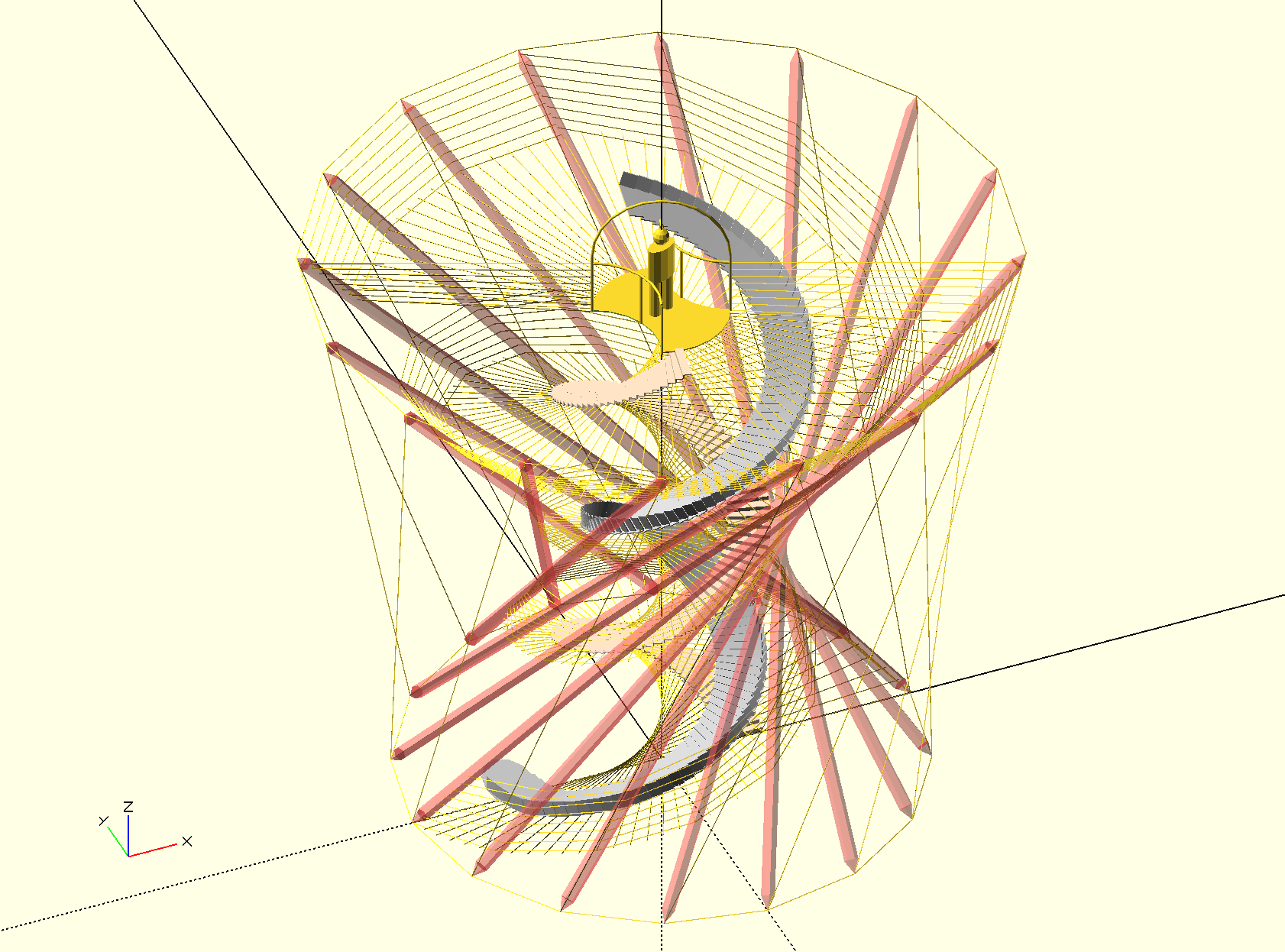 2017.10.21 Added a stair and segmented slide in skew double-helix formation. Contemplating handrails.
